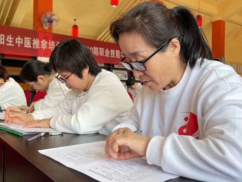 实操考核开始啦 ,学友们两两一组,成人推拿考核的重点在于动作标准与发力技巧,小儿推拿的重点则是腧穴定位与辨证论治,从“客前”的问诊,到“客中”的辩证配穴,一问一答,严格按照考核标准进行!体现了基础教学基本功的重要性,要求我们,精进功力,精进功能 ,精进功效 ,每天进步1%!