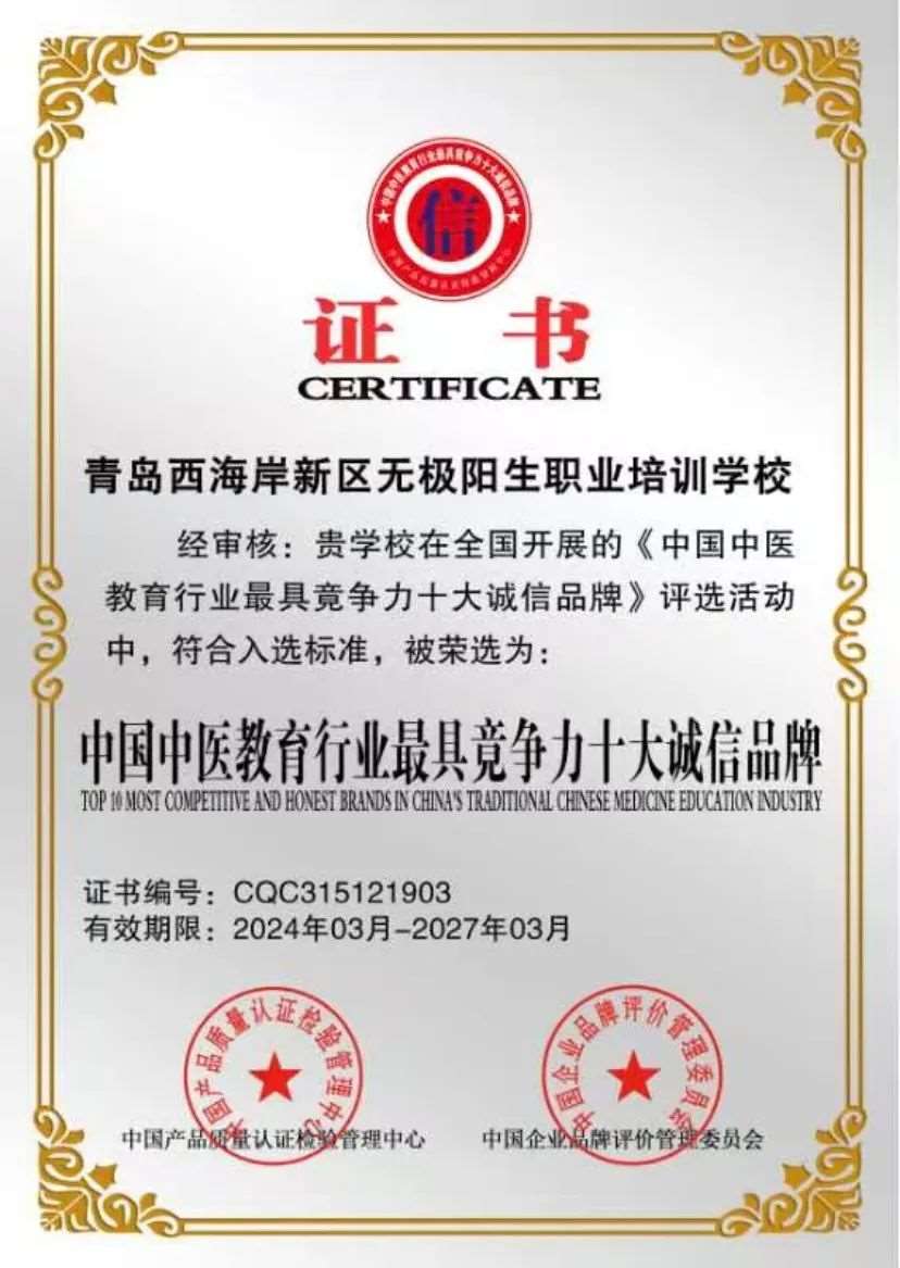 热烈祝贺“无极阳生职业培训学校,荣获中国中医教育行业最具竞争力十大诚信品牌奖”!金榜题名传佳讯,春风得意展宏图!